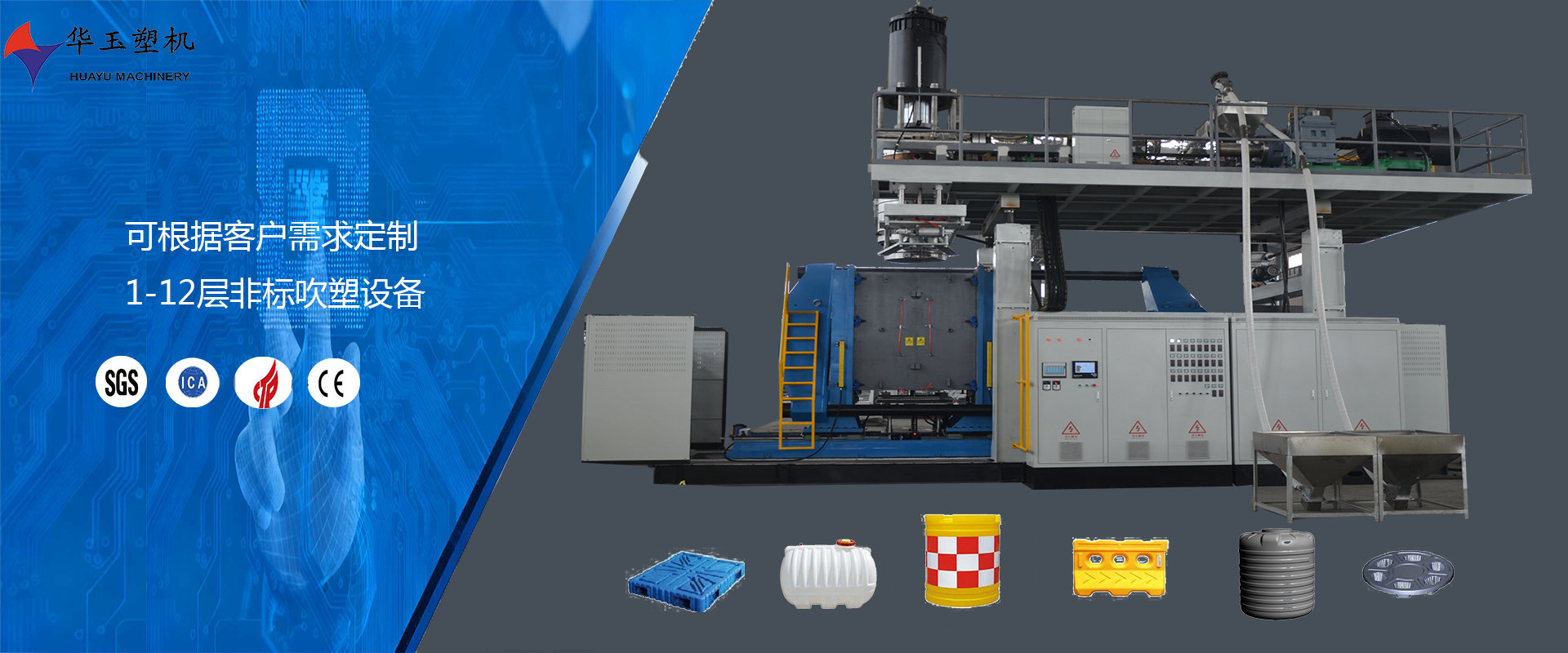 濰坊市華玉塑料機械有限公司創(chuàng)辦于貳零零貳年,是超大型全自動中空吹塑設(shè)備專業(yè)生產(chǎn)廠家。公司融合國內(nèi)外先進技術(shù)和理念,專業(yè)設(shè)計、生產(chǎn)、銷售一層到十層的大型全自動中空成型機組。我公司生產(chǎn)的各型號吹塑機可生產(chǎn)50升到30,000升的各類塑料水桶,噸桶、雙環(huán)桶、水馬、路錐、隔離墻托盤、桌板、浮筒、皮劃艇、工具箱包等中空制品。優(yōu)良的品質(zhì)、穩(wěn)定的性能、優(yōu)越的性價比使公司產(chǎn)品不僅暢銷國內(nèi)市場,并出口到亞洲、東南亞、中東、歐洲、北美、南美、非洲等80多個國家和地區(qū),深受客戶的好評...